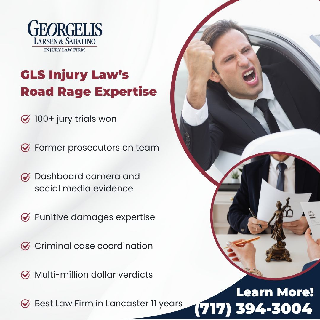 Lancaster, PA – GLS Injury Law, P.C. has released detailed information about how road rage and aggressive driving cases require different legal strategies compared to standard car accidents. The Lancaster-based firm explains that these incidents involve intentional acts of violence rather than simple driver errors, creating unique challenges for victims seeking compensation.